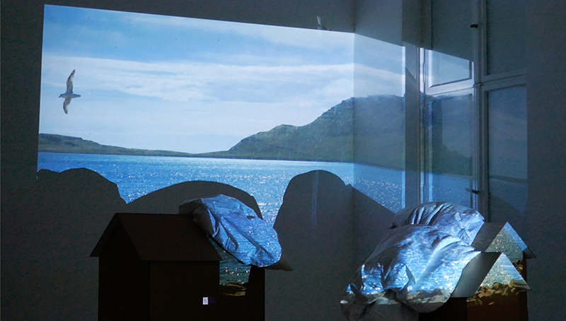 Videoinstallation, Pappe, Decken, 4 Filme.